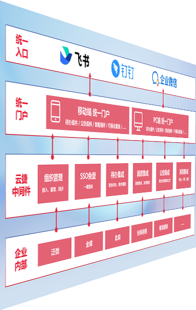 对协作平台提供支持服务,,支持企业应用与协作平台对接,,,,包含组织同步、、、、消息集成、、、待办集成等。。。支持目前主流的协作平台:钉钉、、、企微和飞书。。